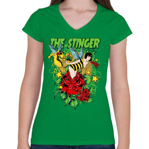 1 kép PRINTFASHION Szúrás - Női V-nyakú póló - Zöld