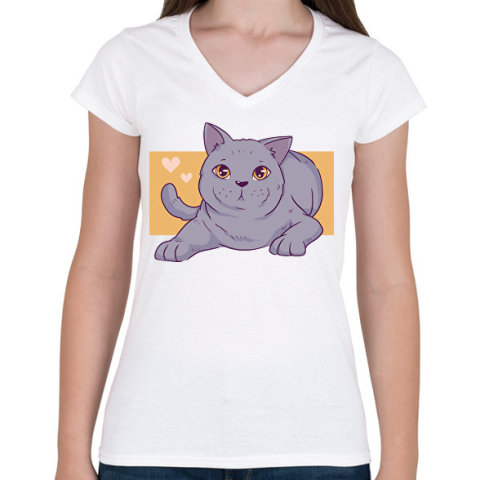 1 kép PRINTFASHION Szürke cica - Női V-nyakú póló - Fehér