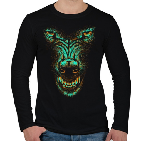 1 kép PRINTFASHION Szürkefarkas - Férfi hosszú ujjú póló - Fekete