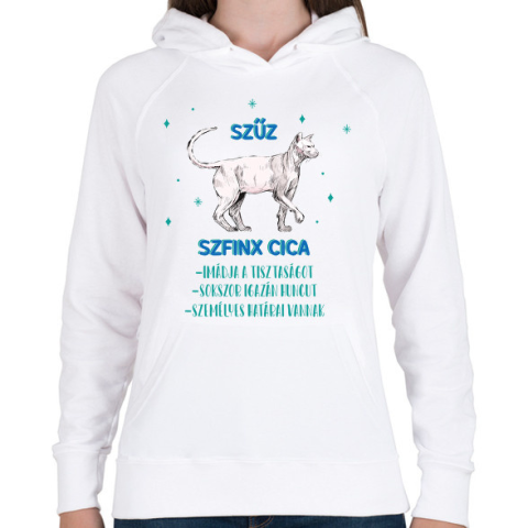 1 kép PRINTFASHION Szűz - Szfinx cica - Női kapucnis pulóver - Fehér