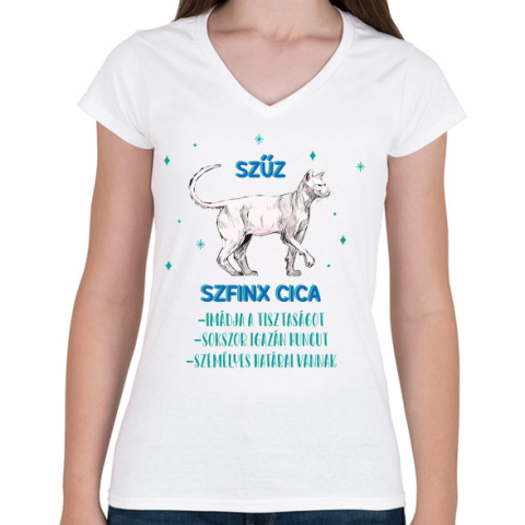 1 kép PRINTFASHION Szűz - Szfinx cica - Női V-nyakú póló - Fehér