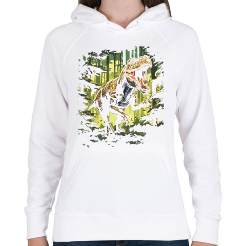 1 kép PRINTFASHION T-rex az erdőben - Női kapucnis pulóver - Fehér