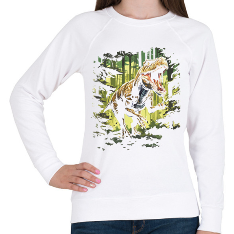 1 kép PRINTFASHION T-rex az erdőben - Női pulóver - Fehér