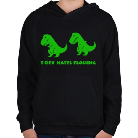 1 kép PRINTFASHION T-rex floss dance - Gyerek kapucnis pulóver - Fekete