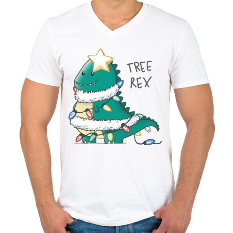 1 kép PRINTFASHION T-rex karácsonyfa - Férfi V-nyakú póló - Fehér