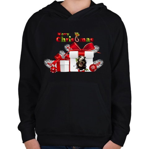 1 kép PRINTFASHION T-Rex Karácsonyra - Gyerek kapucnis pulóver - Fekete
