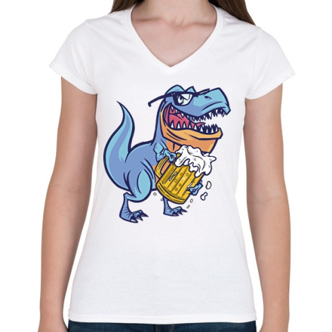 1 kép PRINTFASHION T-rex sörrel - Női V-nyakú póló - Fehér