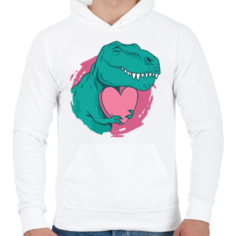 1 kép PRINTFASHION T-rex szívvel - Férfi kapucnis pulóver - Fehér