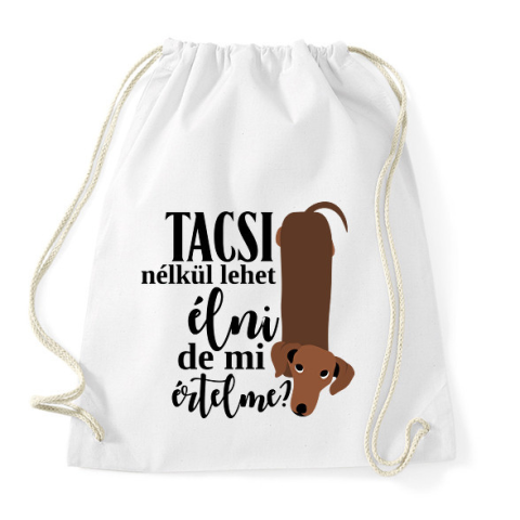 1 kép PRINTFASHION Tacsi nélkül lehet élni, de mi értelme? - Sportzsák, Tornazsák - Fehér
