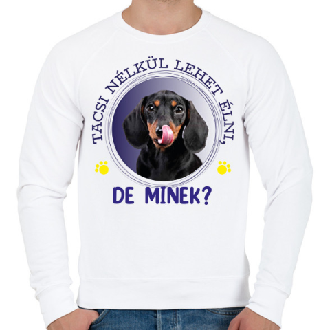 1 kép PRINTFASHION Tacsi nélkül lehet élni, de minek? - Férfi pulóver - Fehér