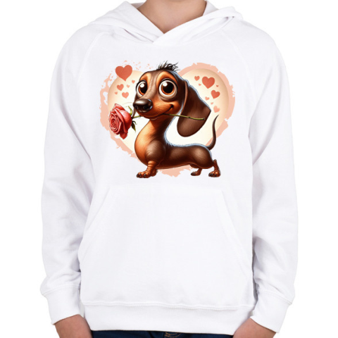 1 kép PRINTFASHION Tacsi rózsával - Gyerek kapucnis pulóver - Fehér