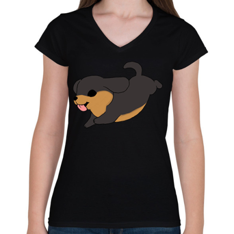 1 kép PRINTFASHION Tacskó (fekete cser) - Női V-nyakú póló - Fekete