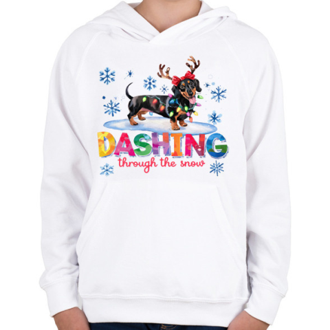 1 kép PRINTFASHION Tacskó - Gyerek kapucnis pulóver - Fehér
