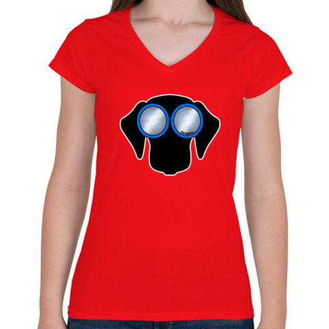 1 kép PRINTFASHION Tacskó kék napszemüvegben - Női V-nyakú póló - Piros