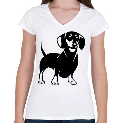 1 kép PRINTFASHION Tacskó - Női V-nyakú póló - Fehér