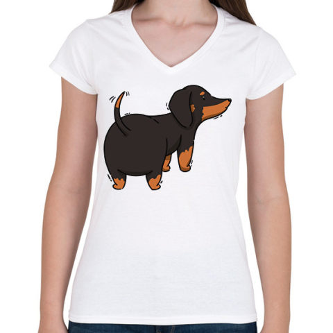 1 kép PRINTFASHION Tacskó - Női V-nyakú póló - Fehér