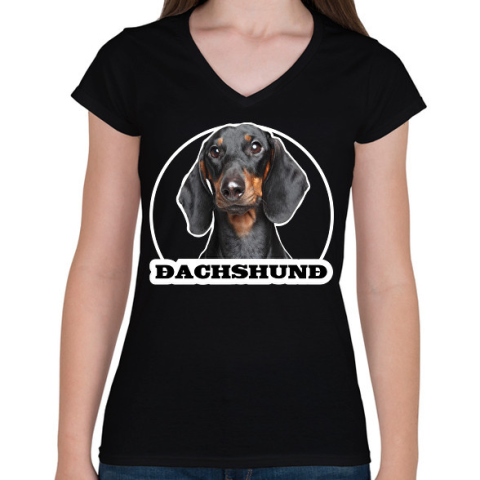 1 kép PRINTFASHION Tacskó - Női V-nyakú póló - Fekete