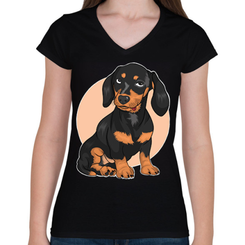 1 kép PRINTFASHION tacskó - Női V-nyakú póló - Fekete
