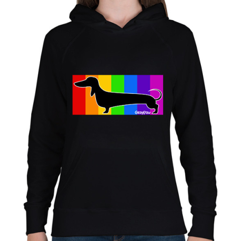 1 kép PRINTFASHION Tacskó szivárvány háttérben - Női kapucnis pulóver - Fekete