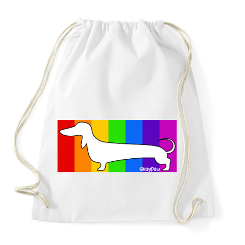 1 kép PRINTFASHION Tacskó szivárvány háttérben - Sportzsák, Tornazsák - Fehér
