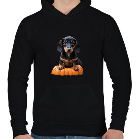 1 kép PRINTFASHION Tacskó tökkel - Férfi kapucnis pulóver - Fekete