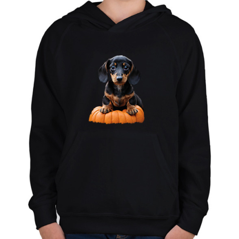 1 kép PRINTFASHION Tacskó tökkel - Gyerek kapucnis pulóver - Fekete