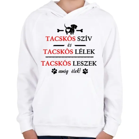1 kép PRINTFASHION Tacskós szív és Tacskós lélek! - Gyerek kapucnis pulóver - Fehér