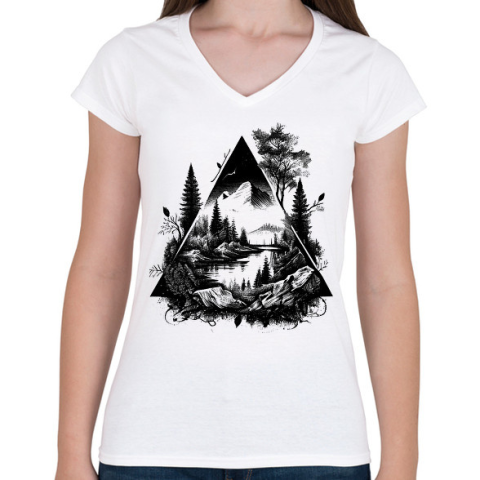 1 kép PRINTFASHION Tájkép - Női V-nyakú póló - Fehér