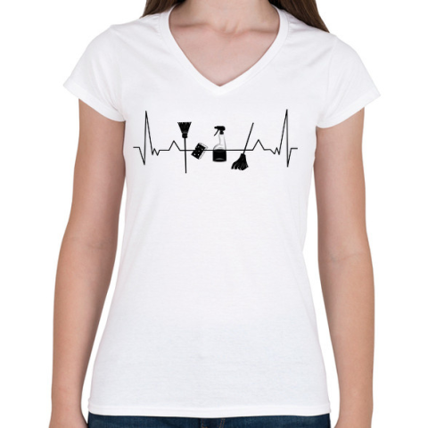 1 kép PRINTFASHION Takarító EKG - Női V-nyakú póló - Fehér