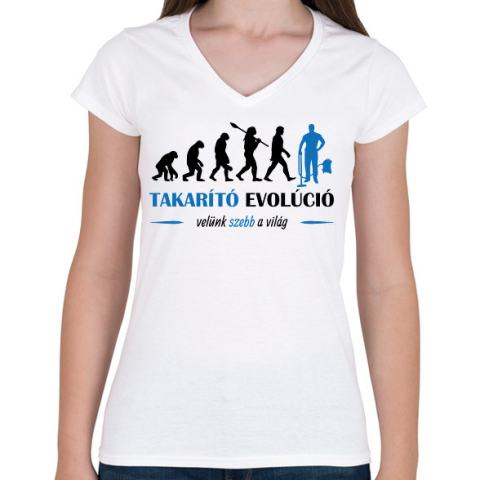1 kép PRINTFASHION Takarító evolúció - Női V-nyakú póló - Fehér
