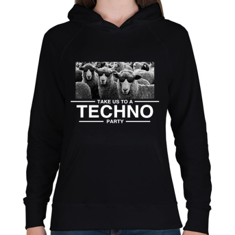 1 kép PRINTFASHION Take us Techno Party - Női kapucnis pulóver - Fekete