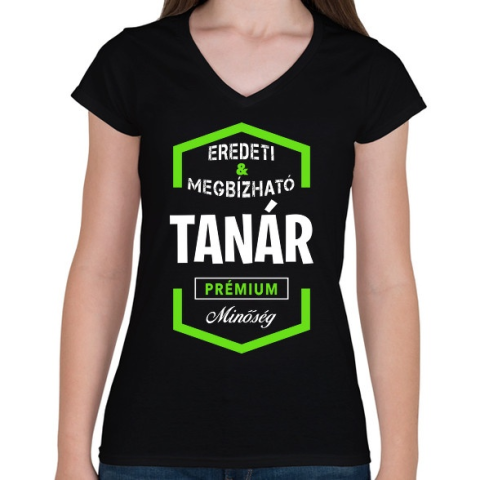 1 kép PRINTFASHION Tanár prémium minőség - Női V-nyakú póló - Fekete