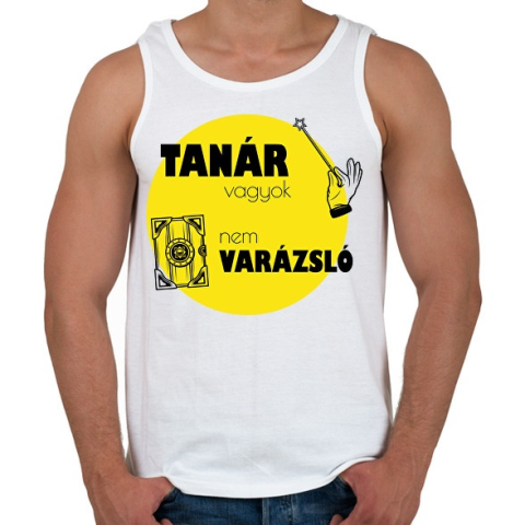 1 kép PRINTFASHION Tanár vagyok, nem Varázsló - Férfi atléta - Fehér