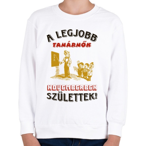 1 kép PRINTFASHION Tanárnő szülinapja november - Gyerek pulóver - Fehér