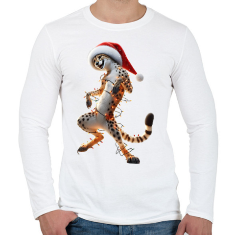 1 kép PRINTFASHION Táncoló karácsonyi party gepárd - Férfi hosszú ujjú póló - Fehér