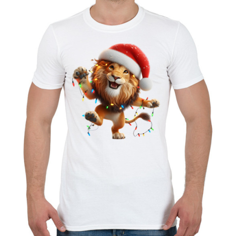 1 kép PRINTFASHION Táncoló karácsonyi party oroszlán - Férfi póló - Fehér