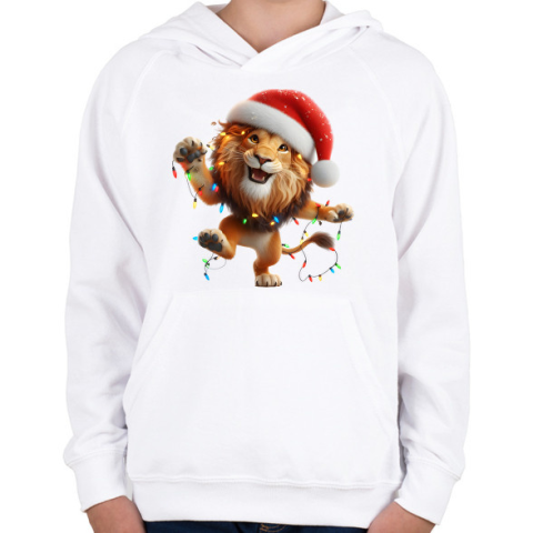 1 kép PRINTFASHION Táncoló karácsonyi party oroszlán - Gyerek kapucnis pulóver - Fehér