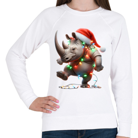 1 kép PRINTFASHION Táncoló karácsonyi party orrszarvú - Női pulóver - Fehér
