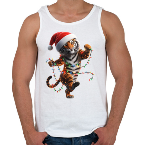 1 kép PRINTFASHION Táncoló karácsonyi party tigris - Férfi atléta - Fehér