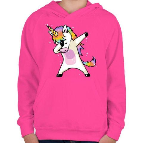 1 kép PRINTFASHION Táncos unikornis - Gyerek kapucnis pulóver - Fukszia