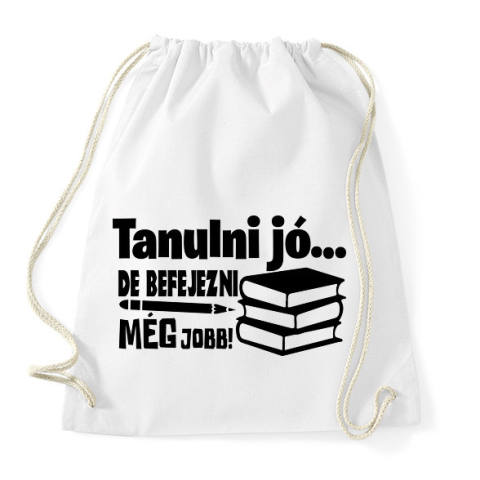1 kép PRINTFASHION Tanulni jó, de befejezni még jobb! - Sportzsák, Tornazsák - Fehér