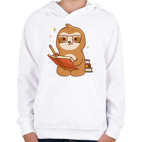 1 kép PRINTFASHION Tanuló lajhár - Gyerek kapucnis pulóver - Fehér