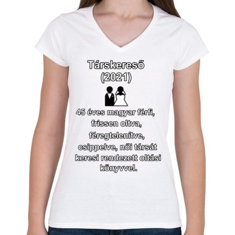 1 kép PRINTFASHION társkereső 2021 - Női V-nyakú póló - Fehér
