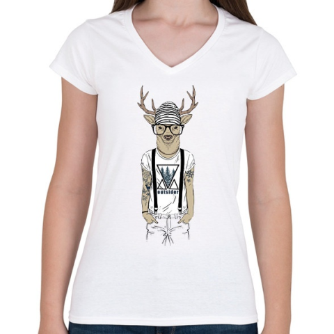 1 kép PRINTFASHION Tattoed Deer - Női V-nyakú póló - Fehér