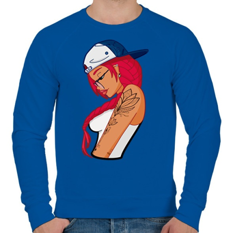 1 kép PRINTFASHION Tattoo Girl - Férfi pulóver - Királykék