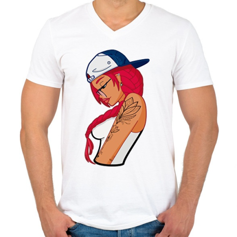 1 kép PRINTFASHION Tattoo Girl - Férfi V-nyakú póló - Fehér