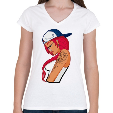 1 kép PRINTFASHION Tattoo Girl - Női V-nyakú póló - Fehér