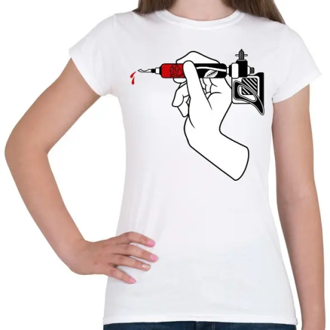 1 kép PRINTFASHION Tattoo Gun - Női póló - Fehér