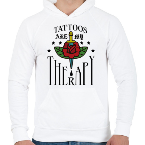 1 kép PRINTFASHION Tattoos are my therapy - Férfi kapucnis pulóver - Fehér