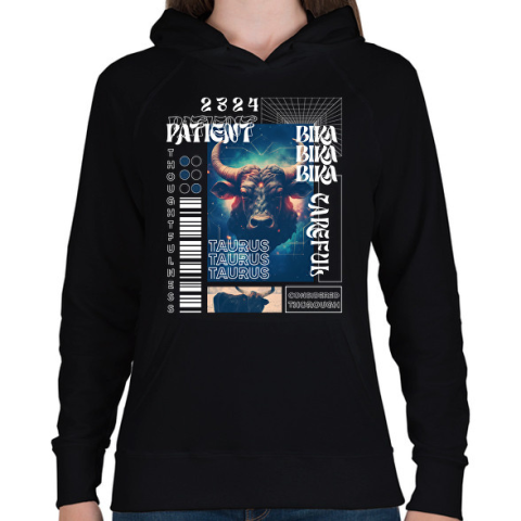 1 kép PRINTFASHION Taurus - Streetwear style - Női kapucnis pulóver - Fekete